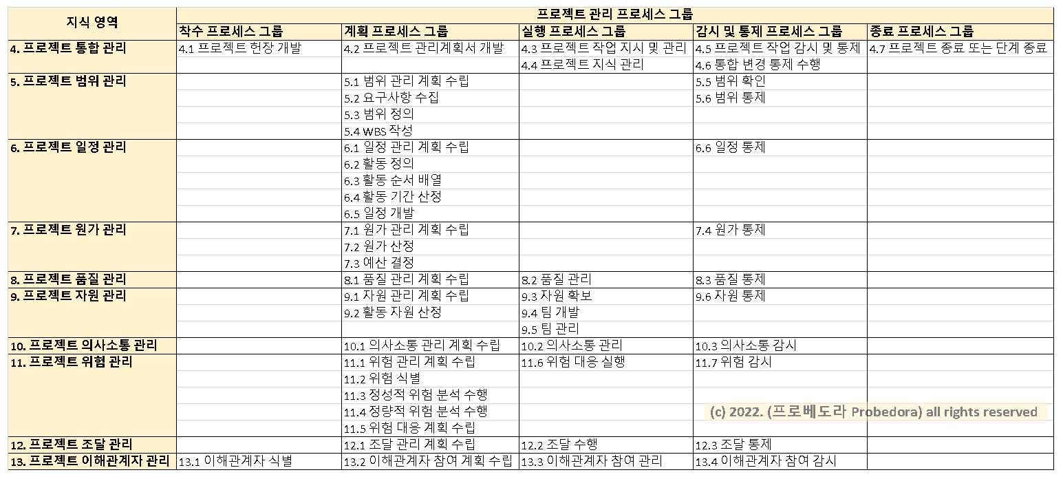 영문 출처 : PMBOK (Project Management Body of Knowledge) 6th Edition