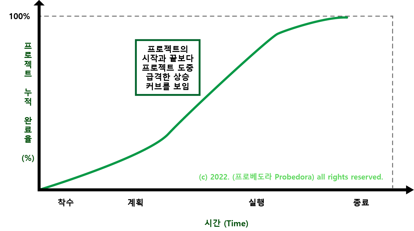 프로젝트 프로세스에 들어가는 노력과 자원. (시간에 따른)