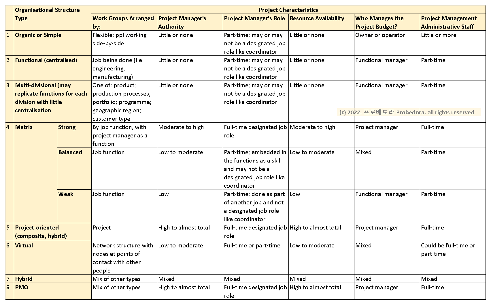 ⑤ 프로젝트 중심 조직. Project-oriented Organisation.